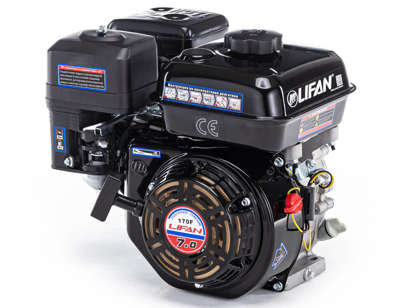 4-хтактный бензиновый двигатель Lifan 170F мощностью 7.0 л.с. это модель двигателей Lifan бытового назначения, которая пользуется огромной популярностью у мирового потребителя. Зачастую этот двигатель используют в качестве замены устаревшего на мотоблоках и мотокультиваторах таких известных торговых марок, как: Нева, Ока, Агат, Салют, Авангард, УГРА, Фаворит, Carver, Хопер, Huter и многие другие. Повышеная износостойкость и качественные детали изделия позволяют применять к нему самые жёсткие требования. Эта модель сочетает в себе долговечность, экономичность с умеренной стоимостью и простоту в использования.