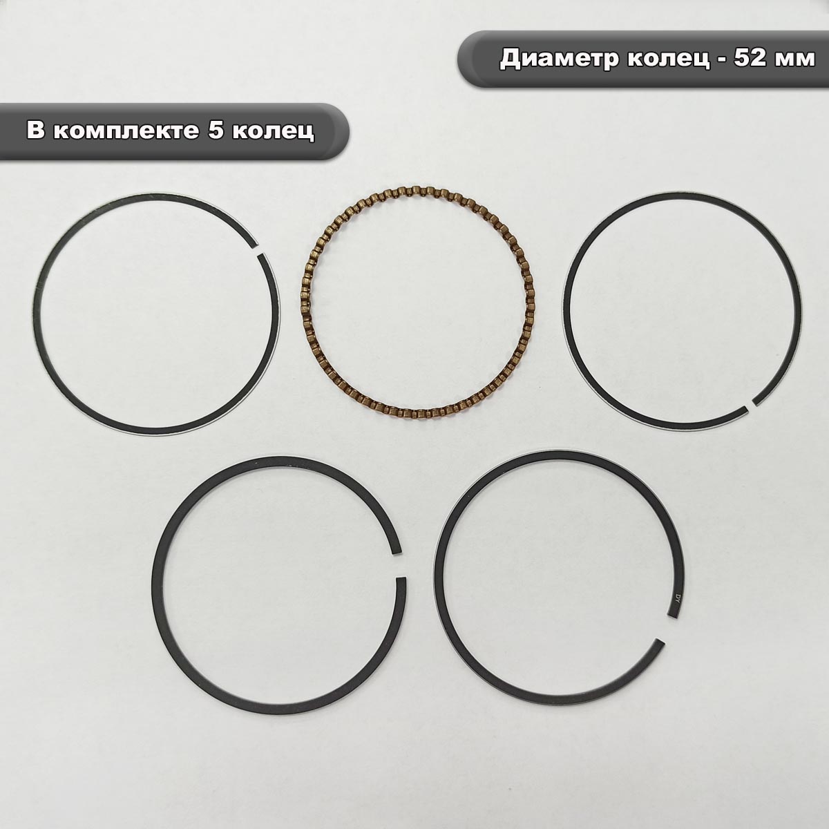 Комплект поршневых колец для двигателя Lifan 152F и его аналогов. Диаметр 52мм