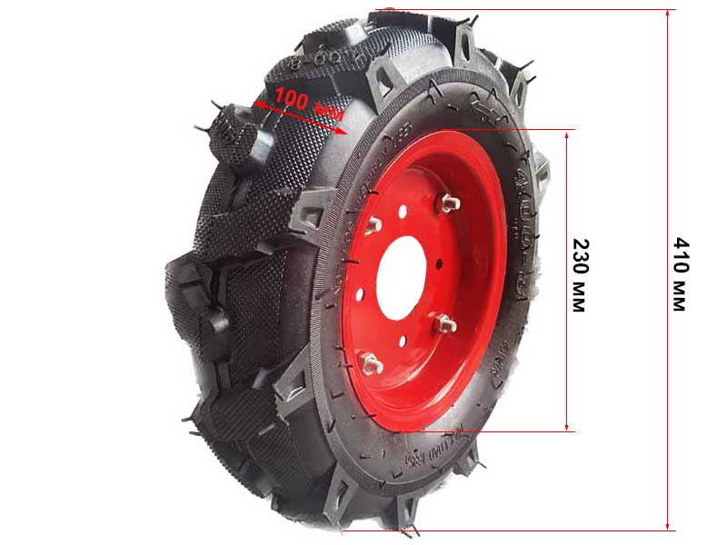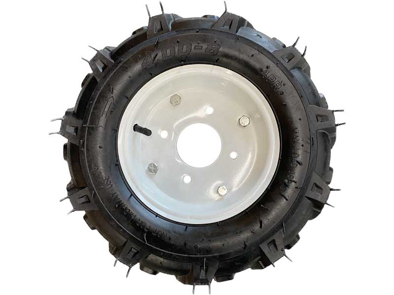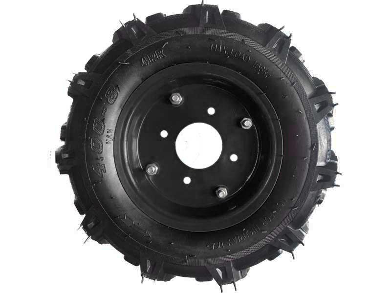 Колесо размерностью 4х8 дюйма с установленной на него покрышкой и камерой. Устанавливается на прицепы, мотоблоки, культиваторы и другую садовую технику.