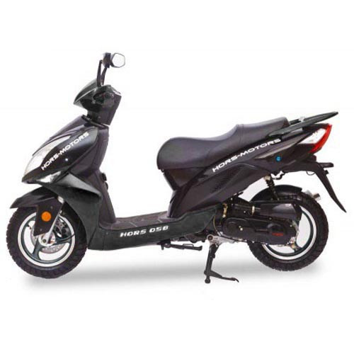 Полноценный двухместный скутер Хорс 058 комплектуется 4-х тактным бензиновым мотором, имеет воздушное охлаждение, электронное зажигание, бесступенчатый вариатор, карбюраторную систему питания, дисковые передние тормоза, электро и кикстартер. Стильный дизайн, мощная и эффектная оптика, оригинальная панель приборов, хорошая динамика разгона.