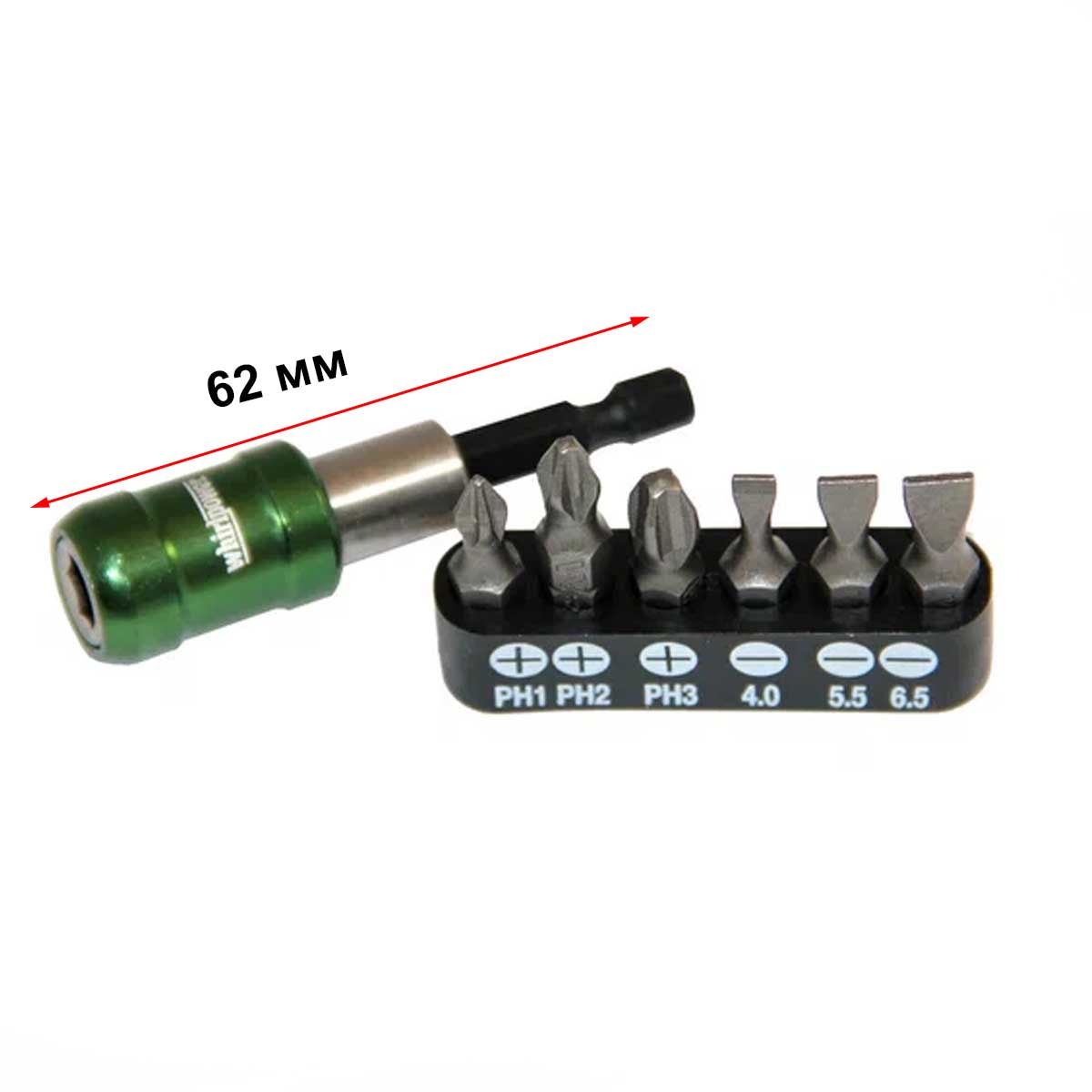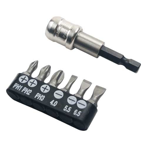Изготовлен из высокопрочной хромванадиевой стали, имеет магнит, предотвращающий выпадение насадок, а также позволяет быстро заменять их, что значительно повышает удобство в работе. 6 высокопрочных бит в комплекте.