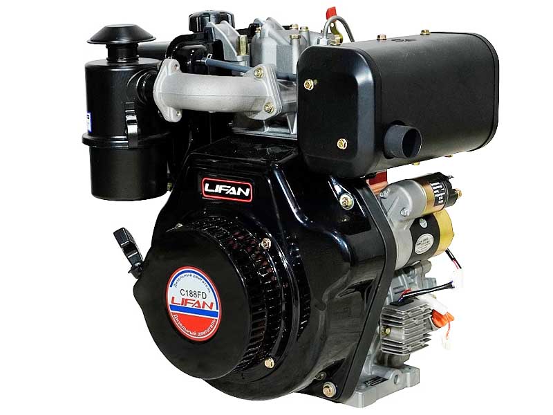 Дизельный двигатель Lifan 188FD разработан для установки на мототехнику различного уровня. Двигатель хорошо подходит для установки на мини тракторы, мотоблоки, мотобуксировщики (мотособаки), снегоходы, болотоходы, вездеходы, картинги, квадроциклы, лодочные моторы, мотопомпы, генераторы и другую всевозможную технику. Также этот двигатель может быть установлен на снегоходы типа "Буран". Эта модель сочетает в себе долговечность, экономичность с умеренной стоимостью и простотой в использовании. Допольнительно оснащен катушкой освещения на 6 Ампер и выпрямителем-стабилизатором, что позволяет подключить полезное электрооборудование мощностью до 80 Ватт и полноценно подзаряжать аккумуляторную батарею.