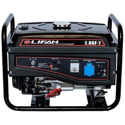 Надежная и компактная модель, проверенная тысячами пользователей в самых разных уголках нашей страны. Данный генератор позволяет обеспечивать электроэнергией Ваши электроприборы в случае отключения питания в электросети. Генератор Lifan 2.8 GF-7 очень хорошо зарекомендовал себя, надежно работая, как в условиях зимних морозов, так и при работе в южных широтах. В основе генератора используется бензиновый двигатель Lifan 170FD. Обмотки статора и ротора выполнены из стопроцентной медной проволоки, что значительно увеличивает ресурс работы данного генератора. Эта модель позволяет работать без дозаправки в течении 10 часов.