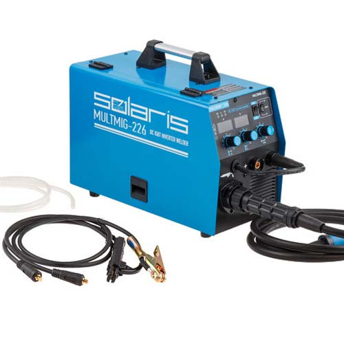 Инверторный сварочный аппарат, позволяющий варить в режиме полуавтоматической MIG/MAG/FLUX и в режиме ручной дуговой (ММА) сварки. Аппарат оснащен евроразъемом для горелки, возможностью смены полярности для сварки проволокой без газа (FLUX). Аппарат построен с использованием IGBT-транзисторов, обладает набором функций HOT START, ANTISTICK; имеет защиту от перегрева, перегрузки.