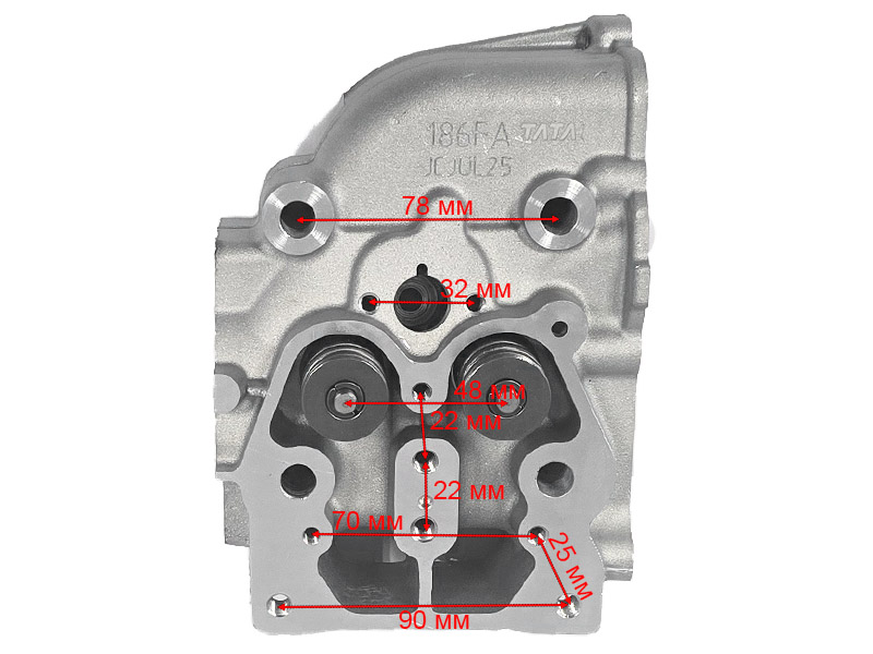Головка блока цилиндра дизельного двигателя с воздушным охлаждением C186F в сборе. Посадка клапанной крышки под 3 болта.