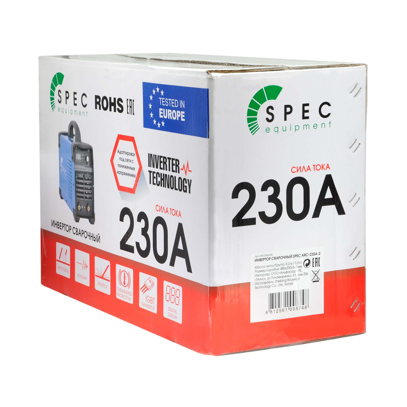 Рабочий цикл: 230А-10%, 165А-60%, 120А-100%