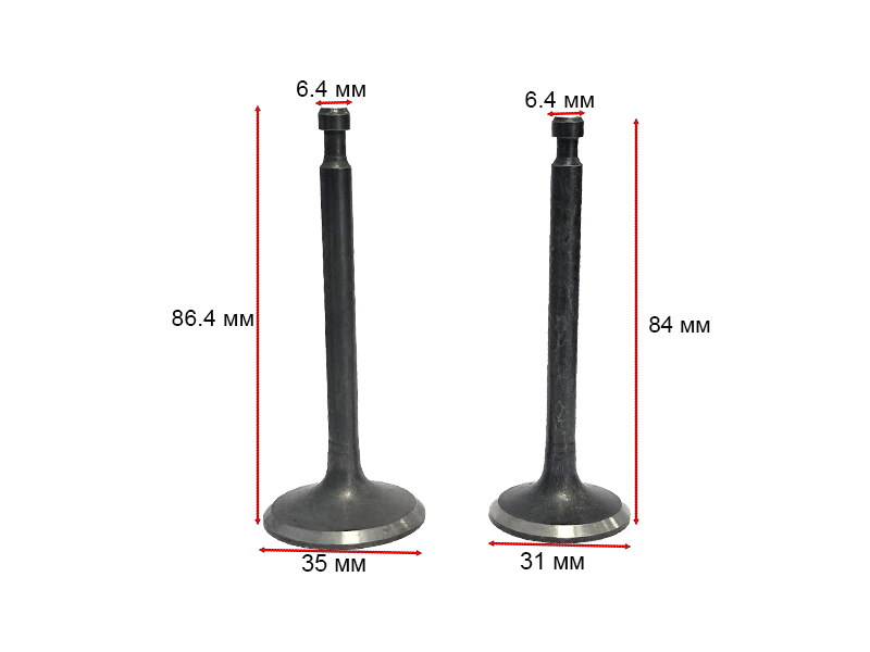 Клапана впускной/выпускной для двигателей одноцилиндровых 173F(GX240),177F(GX270), 183F(GX340), 188F(GX390),190F(GX420),192F(GX440, GX450, GX460.