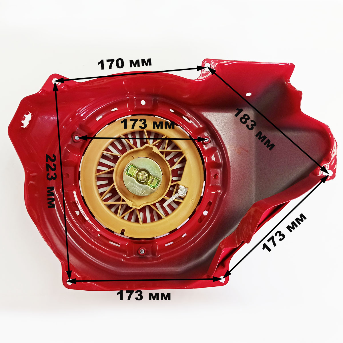 Стартер ручной для двигателя 183F, 188F, 190F,192F, GX270, GX340, GX390, GX420, GX440, GX450, GX460 и аналогов. Поставляется с защитным кожухом